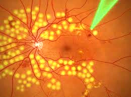 Quando já existe isquemia e surgem os neovasos, o laser é aplicado em toda a retina, principalmente na periferia.